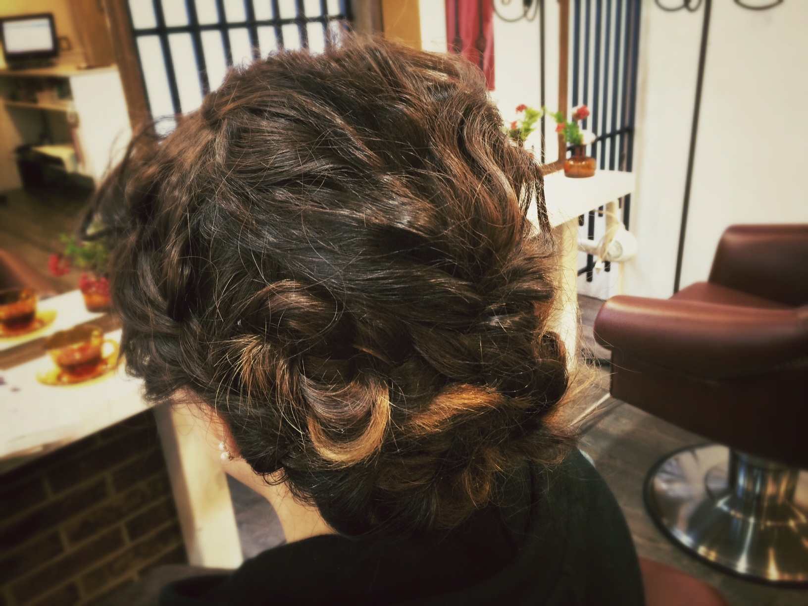 首元で、交差させるようにラフにまとめて、可愛いヨーロピアン風(*^^)v