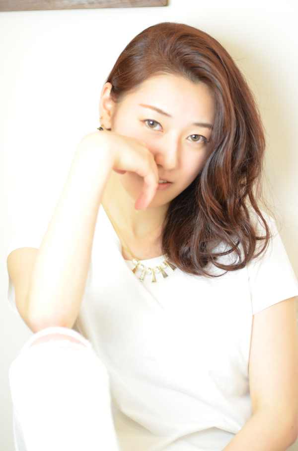 マホガニーレッドで、グラマラスな感じに! レイヤーとアップバングで、ラフな動きを作り大人の遊びヘアーに!! 山崎によるメイクも、クールさを交え雰囲気にばっちり合っていました!!