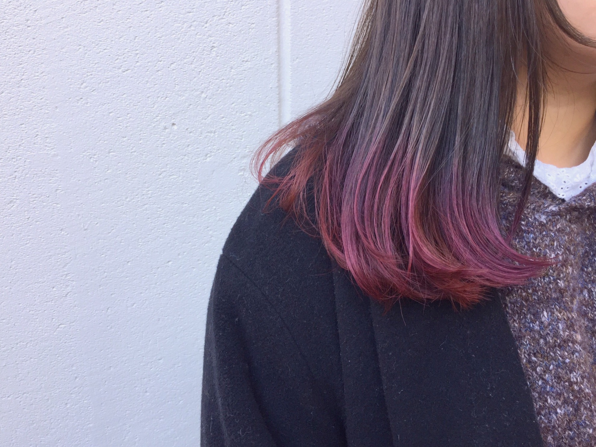 ベースは暗めアッシュに裾カラーでピンクパープルを入れさせて頂きました♪