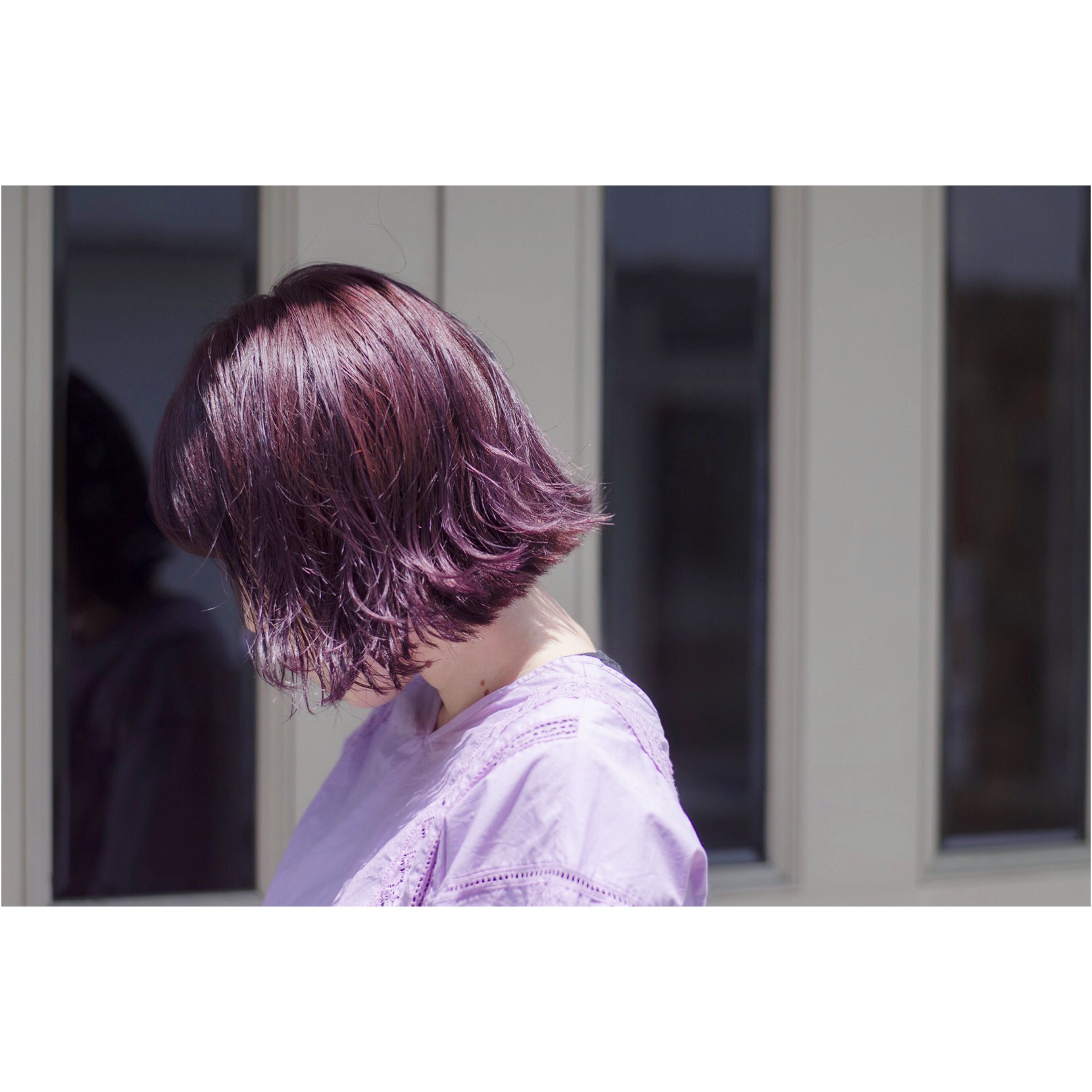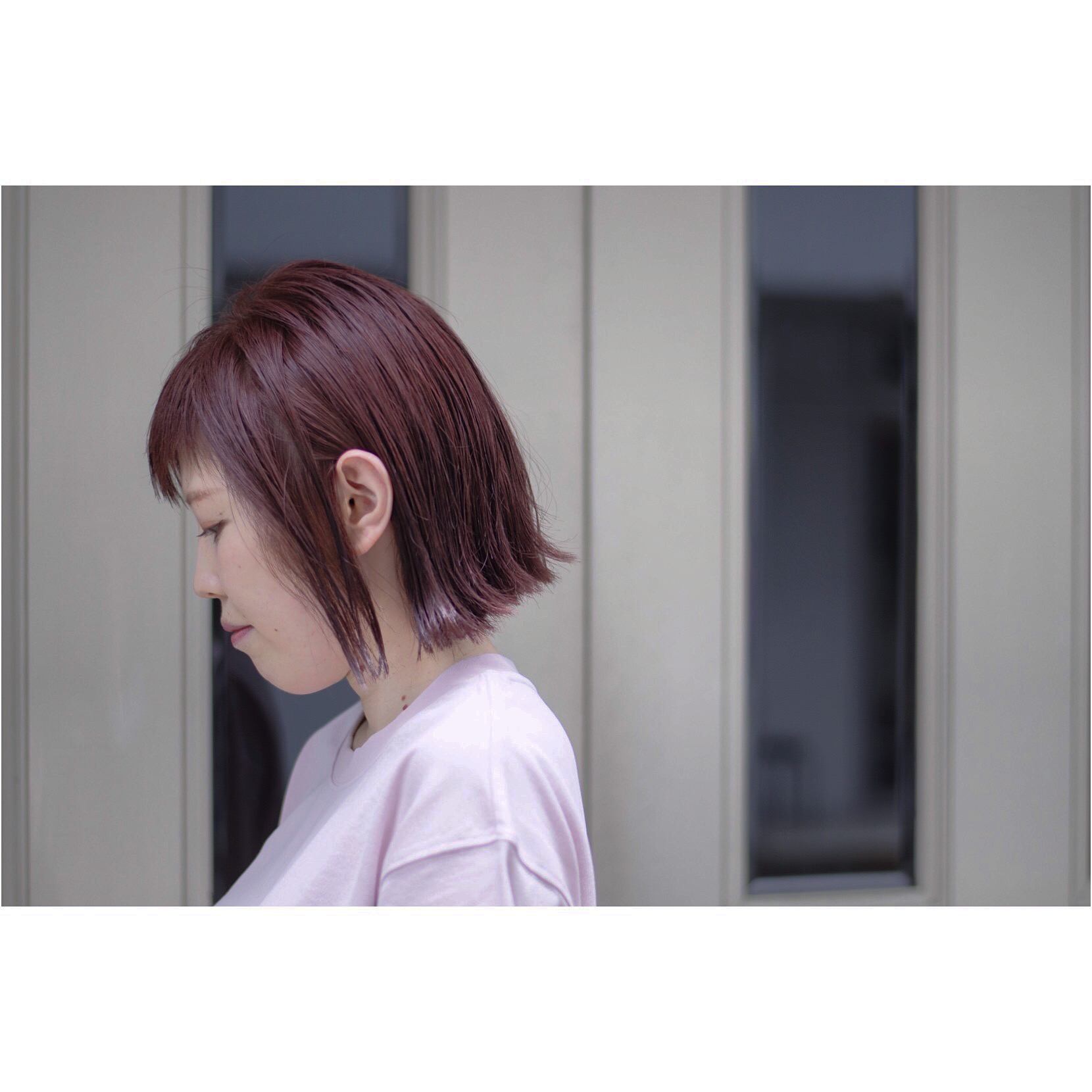 この切りっぱなしボブと赤系の相性が抜群なんです(^^♪