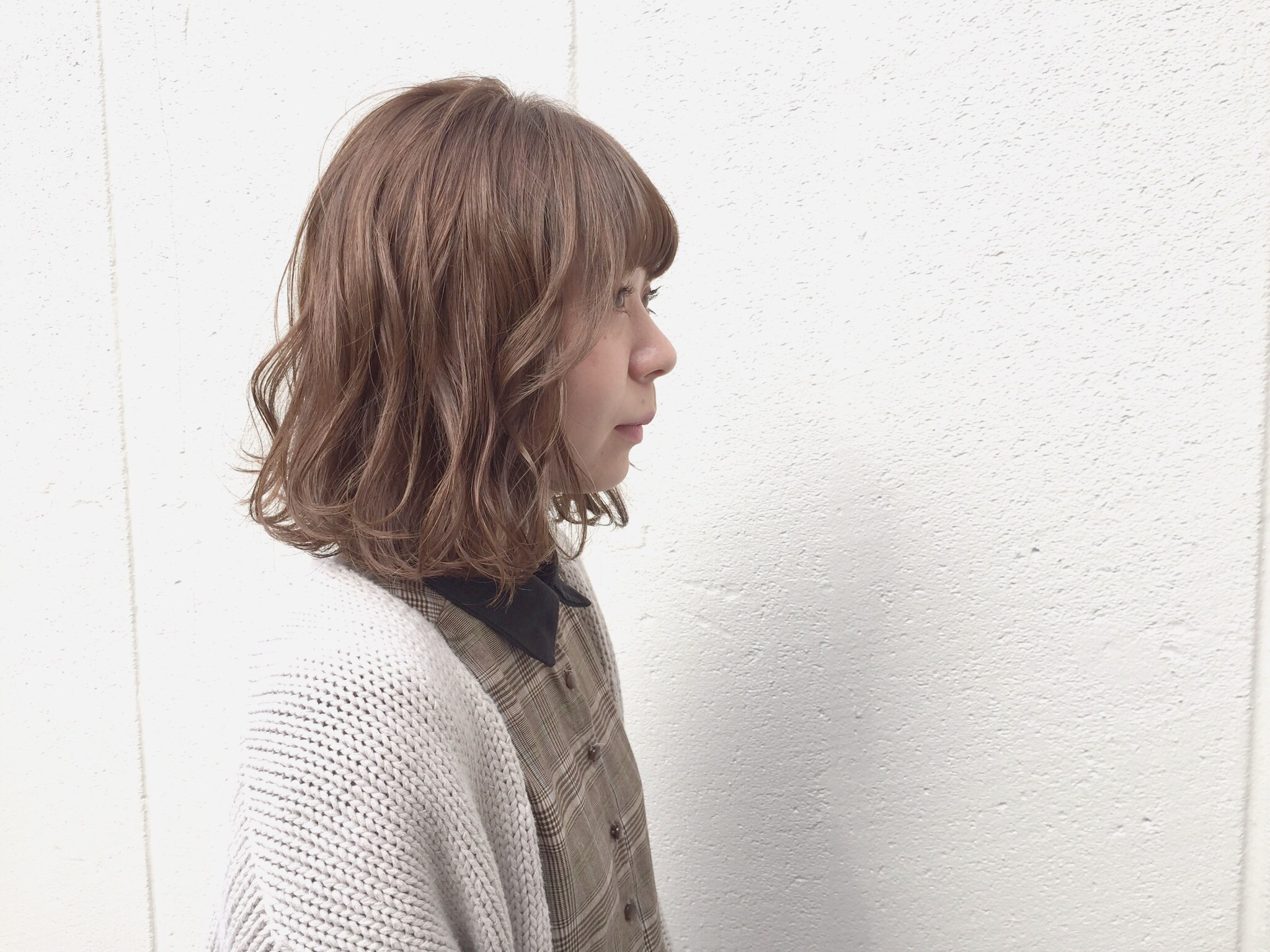 asuka’s style コメントを残す 前回バッサリ肩上ボブにさせて頂いたお客様♪ 今回はメンテナスカットとカラーを。 カラーもくすませすぎないミルキーベージュで柔らかく◎ ふわっふわに巻いてあげると可愛いです* いつもご来店ありがとうございます(^^)/