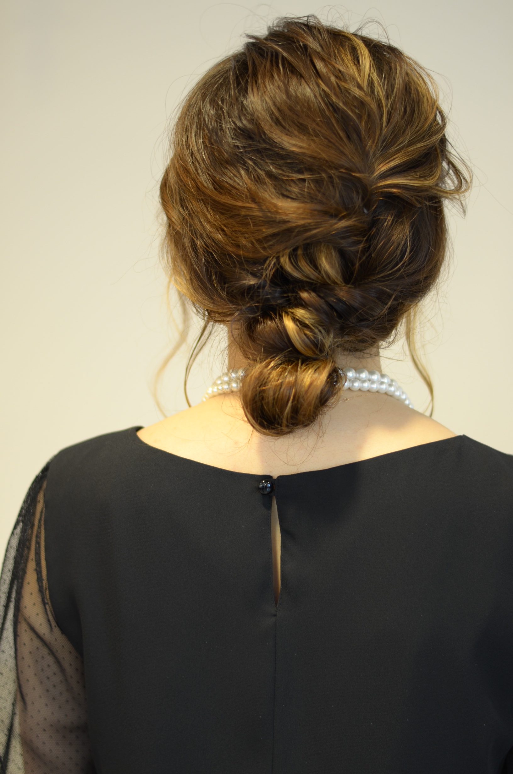 首元でお団子にまとめて、ほぐすだけのアレンジです!!