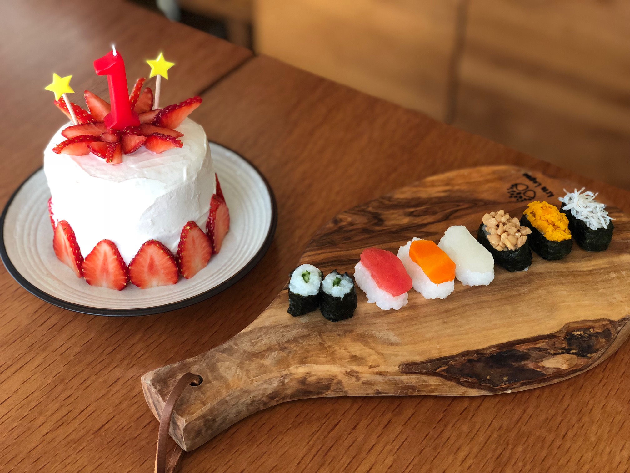 ちなみに、ケーキはパンとベビーダノンです。お寿司は、