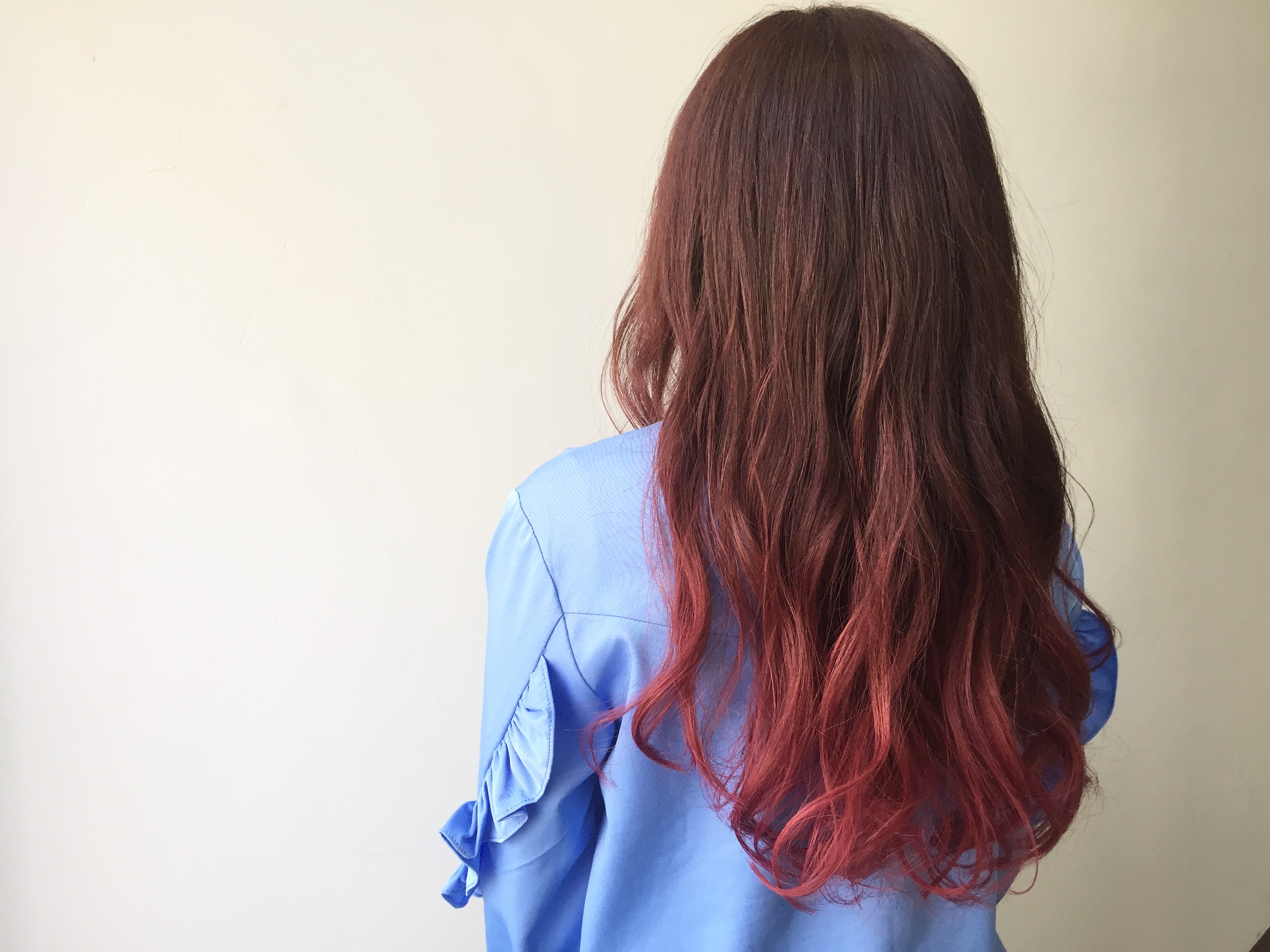 毛先がグラデーションになるように数回ブリーチしてあるベースを活かして、