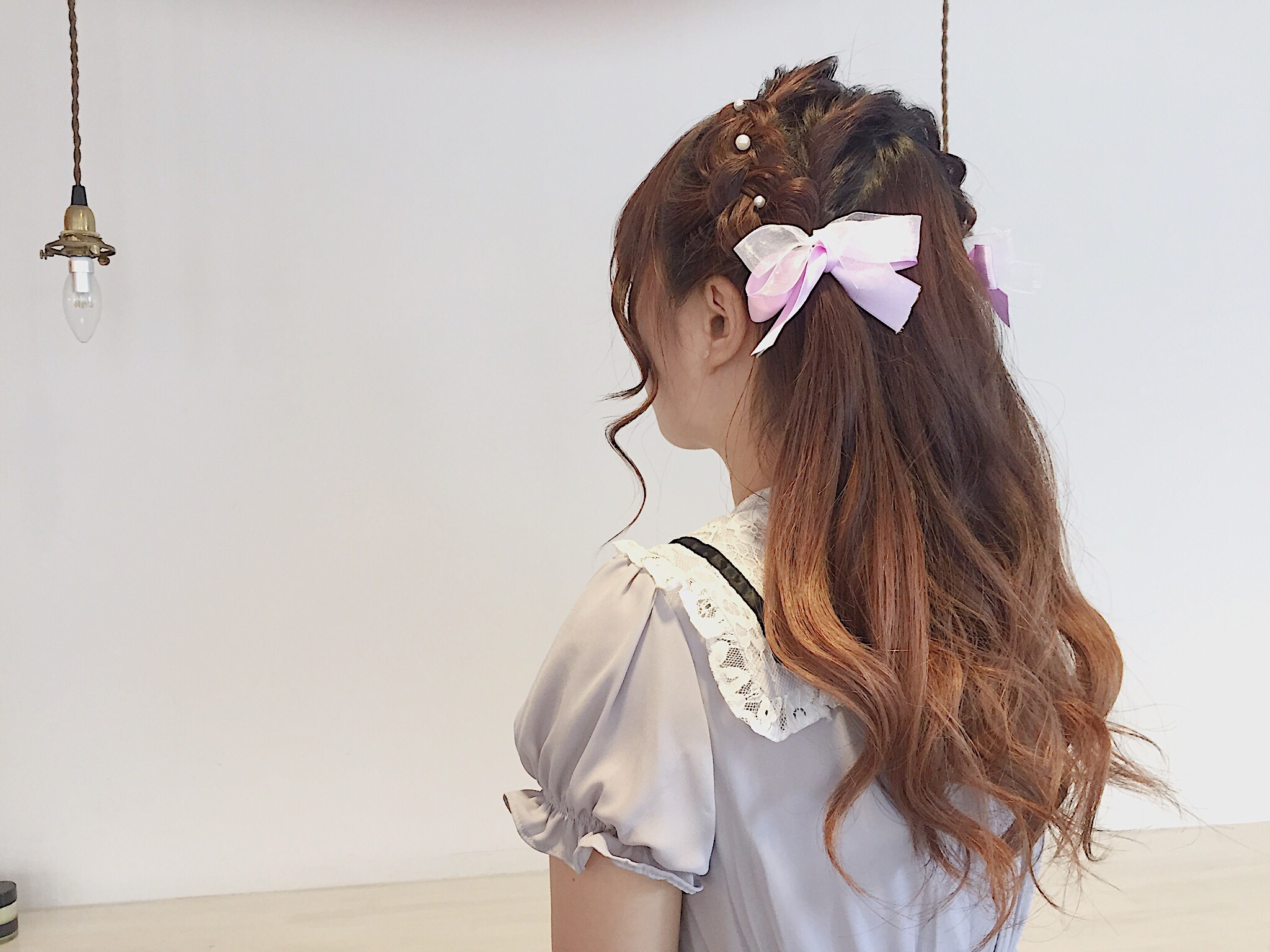 asuak’s arrange コメントを残す こんにちはヤマザキです! 少し前になりますがコンサート仕様にヘアセットに来ていただいたお客様。 トップから両サイドに編み込みしてご持参いただいたリボンを付けさせて頂きました! ゆるっと甘めなアレンジもお任せ下さい♪ 遠方からご来店ありがとうございました(^^)/