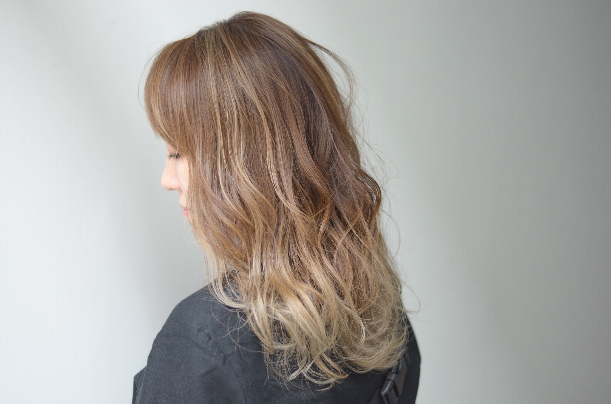 ハイライトから毛先のグラデーションへのナチュラルなつながりと、動くたびに表情が変わる
