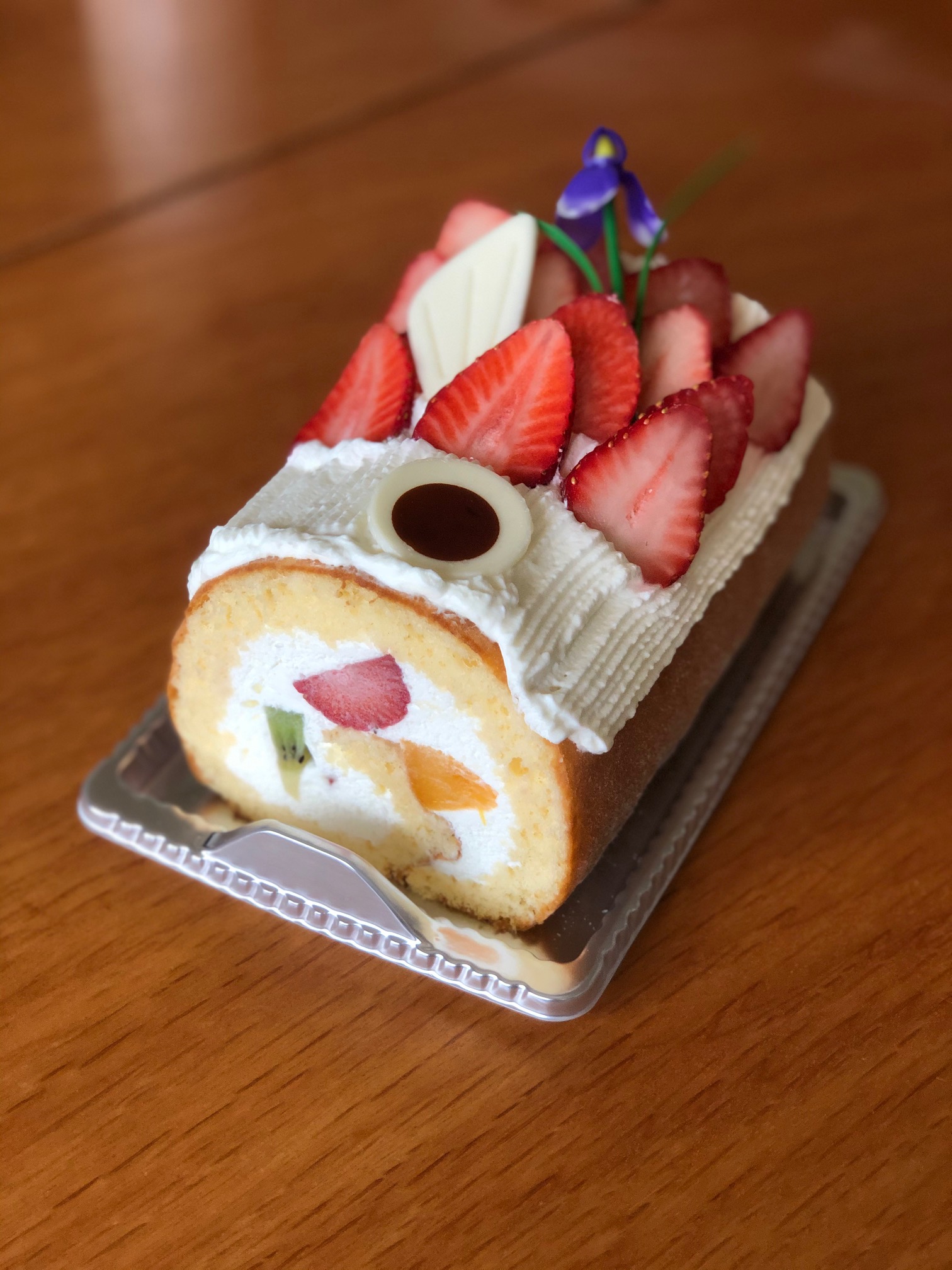 デザートは名月堂さんの限定、鯉のぼりロールケーキ。
