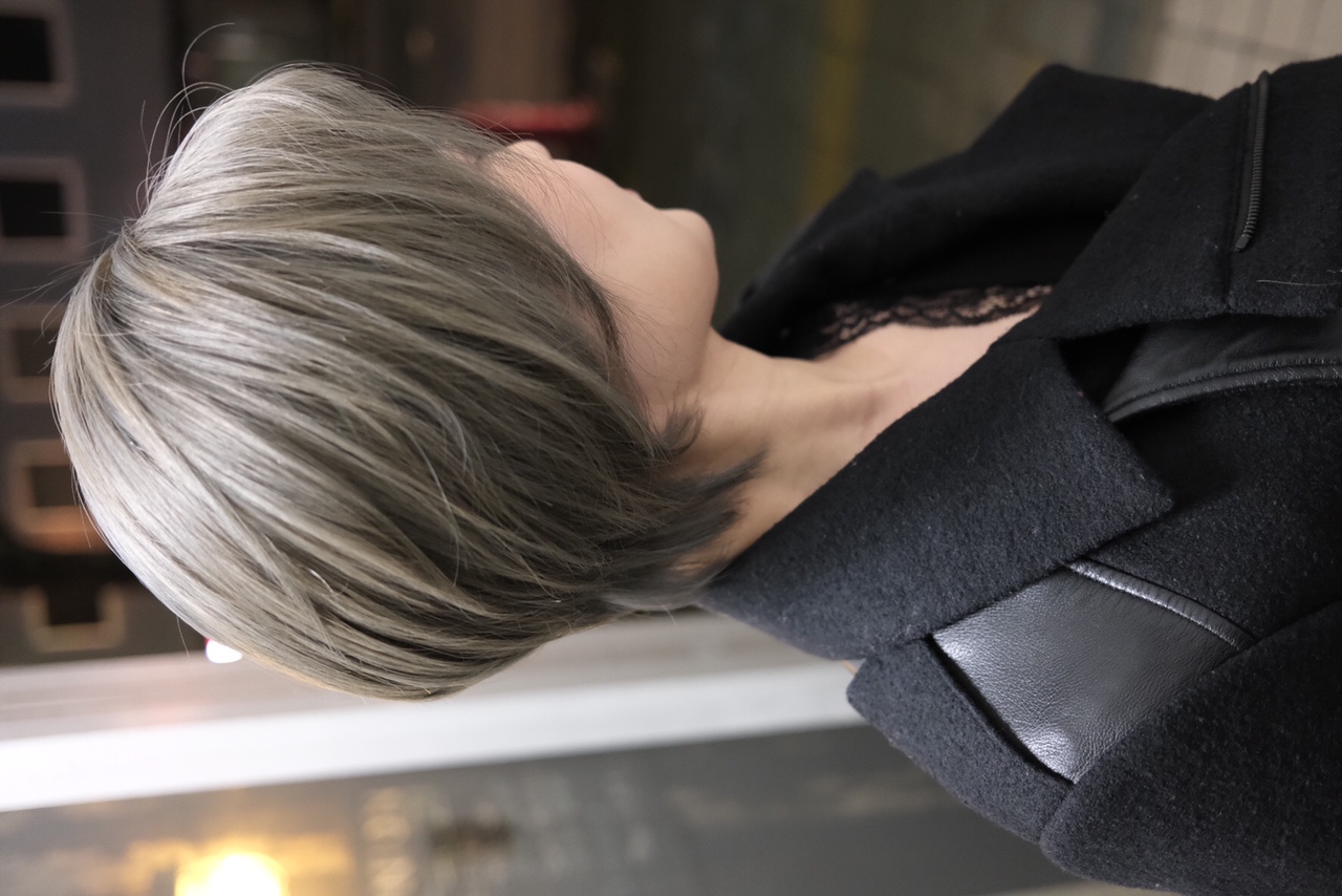 ホワイトに近いハイトーンのグレージュで、限界まで透明感を出しました。
