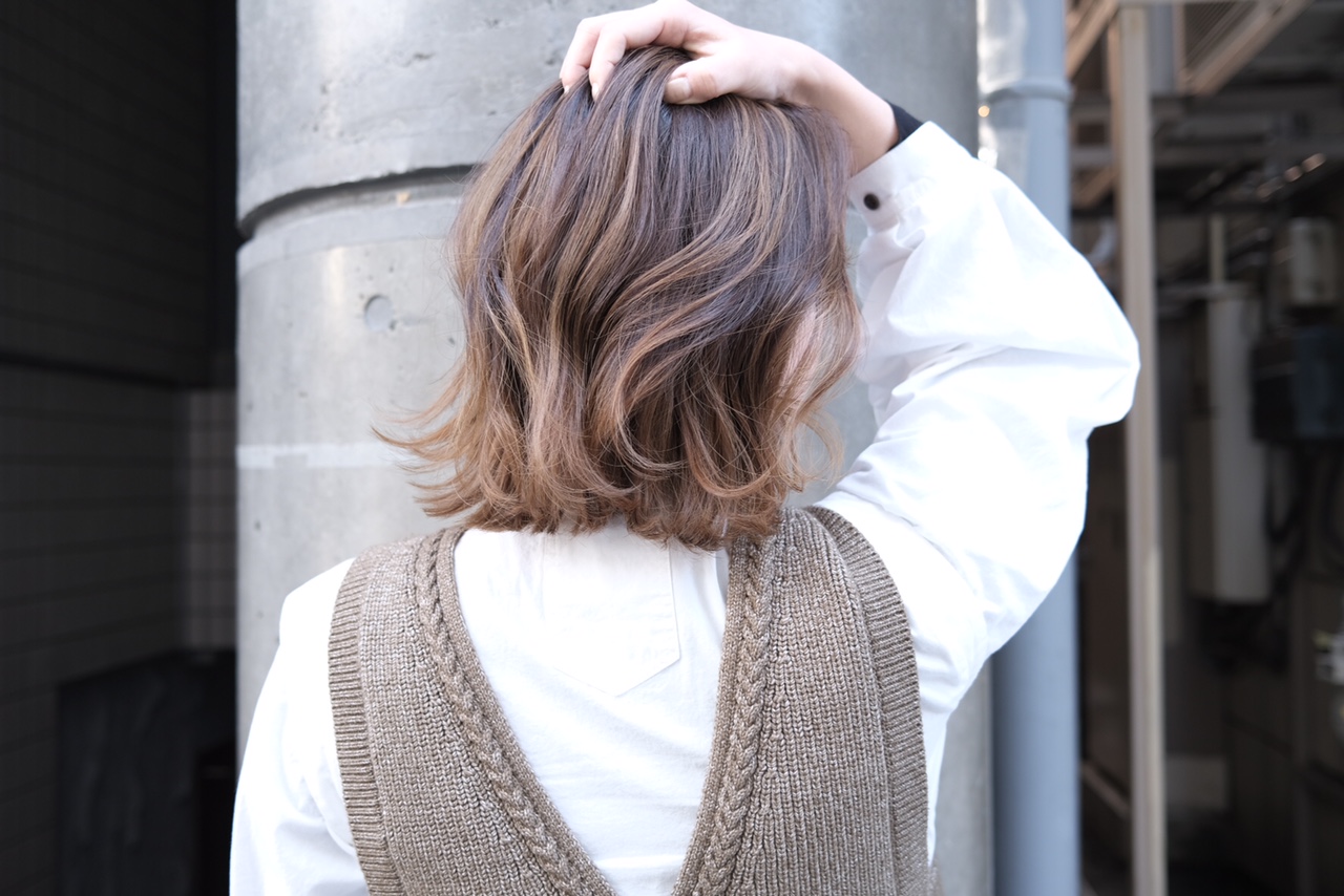 カラーは大人気バレイヤージュで、少しコントラストをきかせた