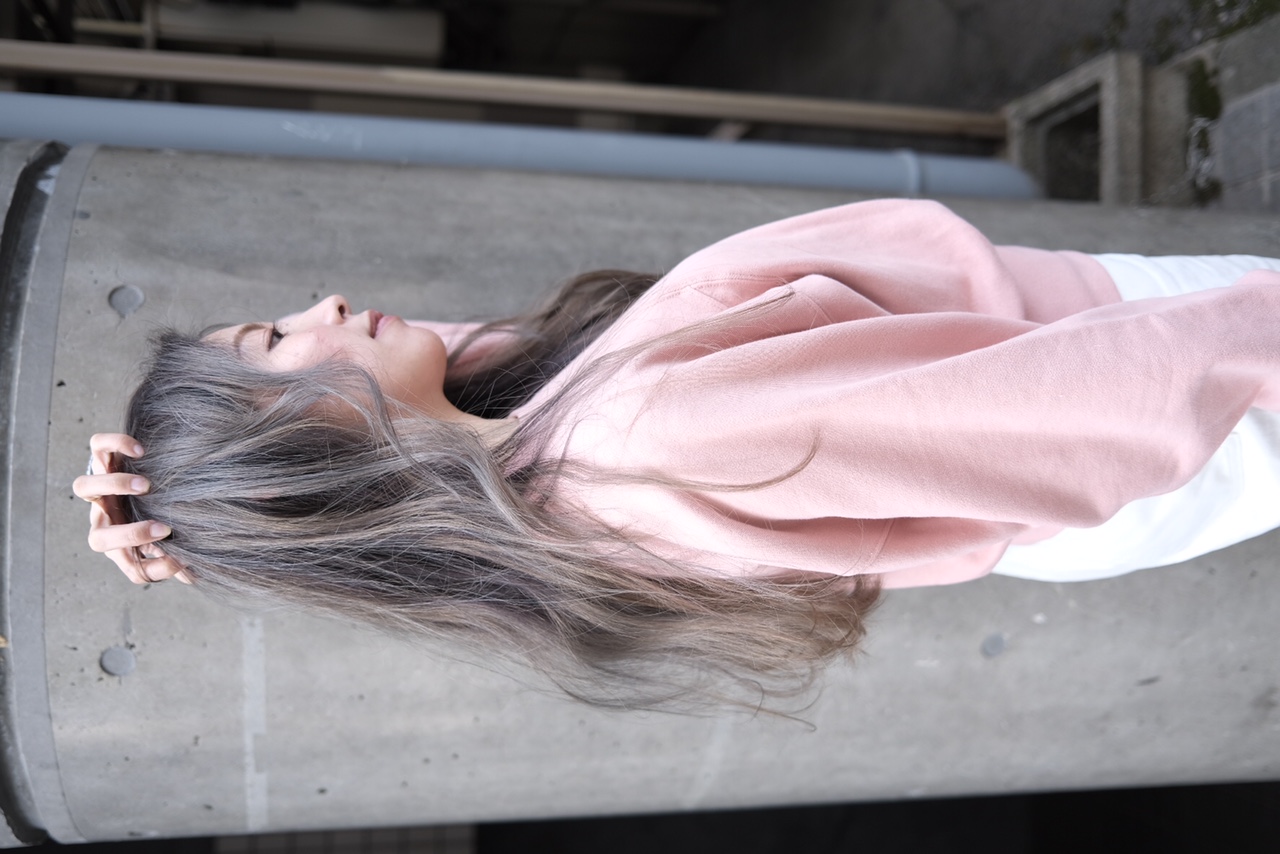 1回のブリーチでは再現できない透明感グレージュを入れ、バレイヤージュを進化させた感じです!