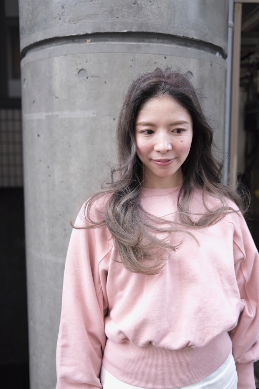 もともと明るくなりやすいお髪なのでブリーチベースではないですが明るいベースにちょっとトーンを抑えた透明感あるオリーブに*