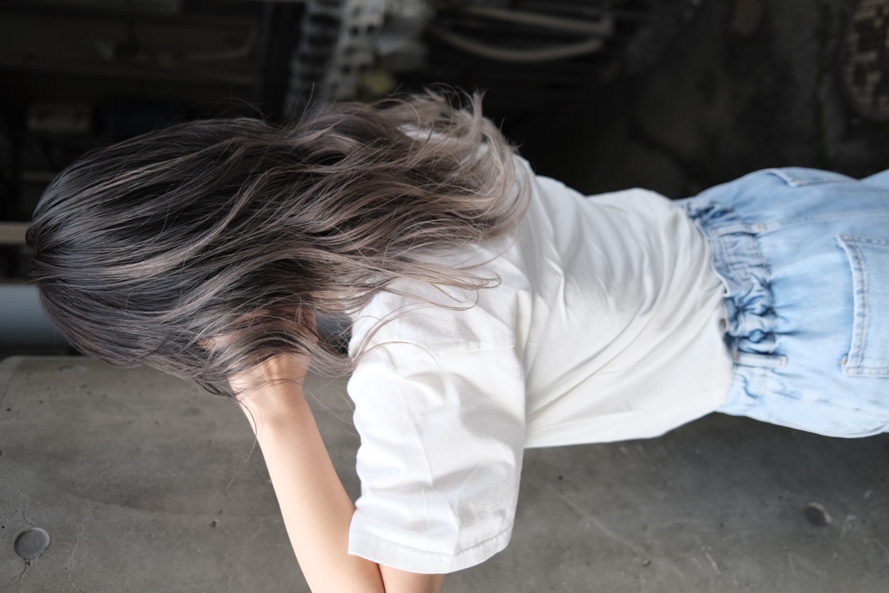 全体にブリーチ毛だった髪を、陰影をつけたメリハリのある