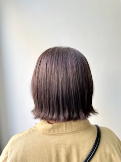 お客様スタイル☆ コメントを残す こんにちは^^久保田です^^ はじめましてのお客様です♪ 長さは肩につかない切りっぱなしのボブに(^^) カラーは生まれて初めてということでしたので、 あまり明るすぎないオリーブグレージュで染めました。 赤味を抑えて透明感も出るように…(^^) 黒髪とはまた違って柔らかい印象でとてもお似合いでした^^ ありがとうございました^^
