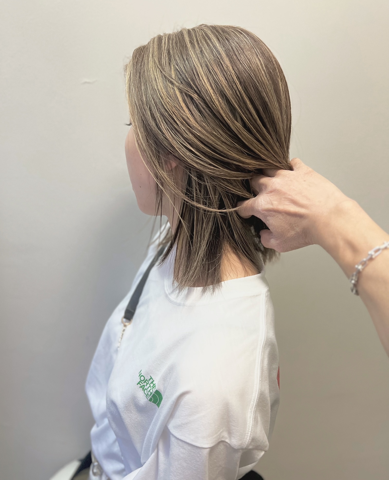 ハイライト特有のスジ感が可愛く入って、スタイリングで表情も色々