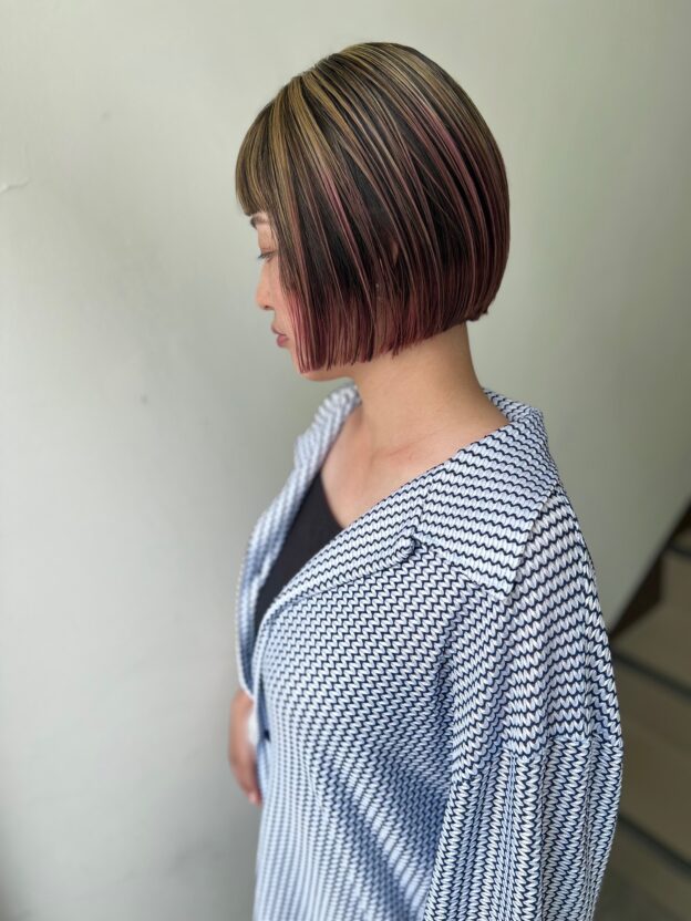 表面の毛先だけにパラパラっとピンクを入れさせて頂きました♪