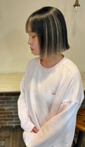 地毛の黒髪にブリーチなしのカラー剤でハイライトをいつも入れています。