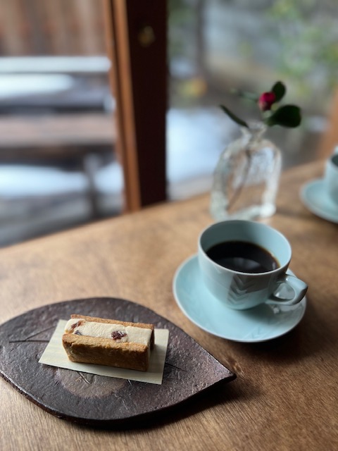 オーナーさんこだわりのコーヒーをフレンチプレスで頂き、デザートは